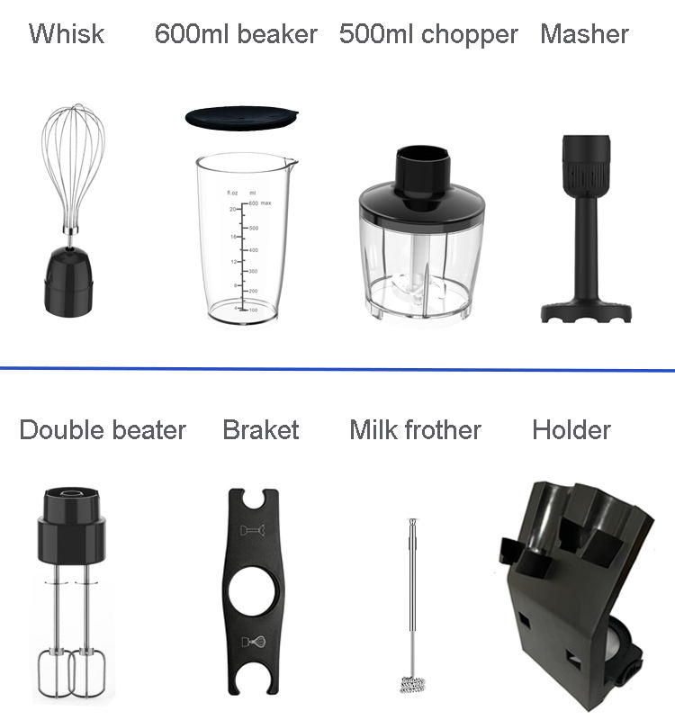 Accesorios:Masher, taza de la medida, helicóptero, batidor, taza de la licuadora, Espumador de leche...