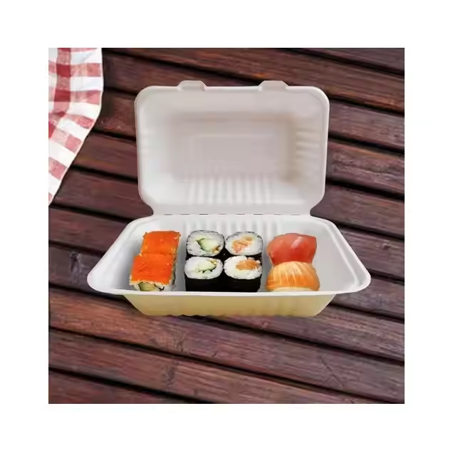 Servicio de comida Desechable para llevar Contenedor de alimentos Suministros Caña de azúcar Bagazo Papel Hamburguesa Clamshell Fiambrera Directo DE LA India