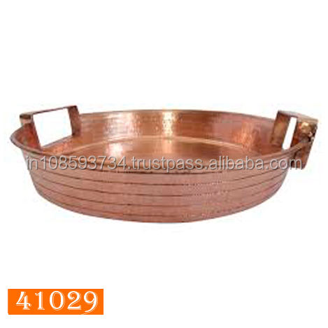 Bandeja decorativa de cobre para servir alimentos, bandeja de cobre con mango de inserción, bandeja de servicio grande antigua, restaurante de Hotel en casa