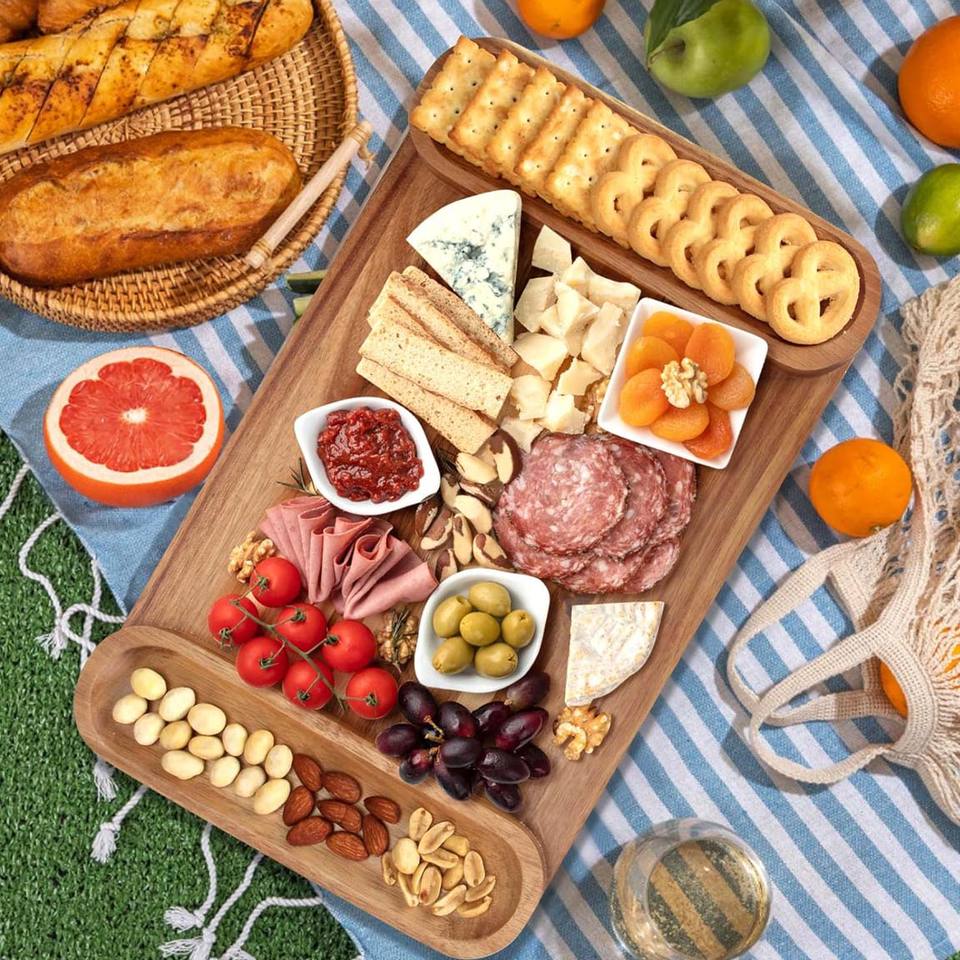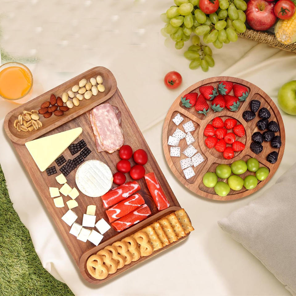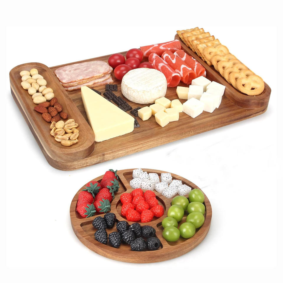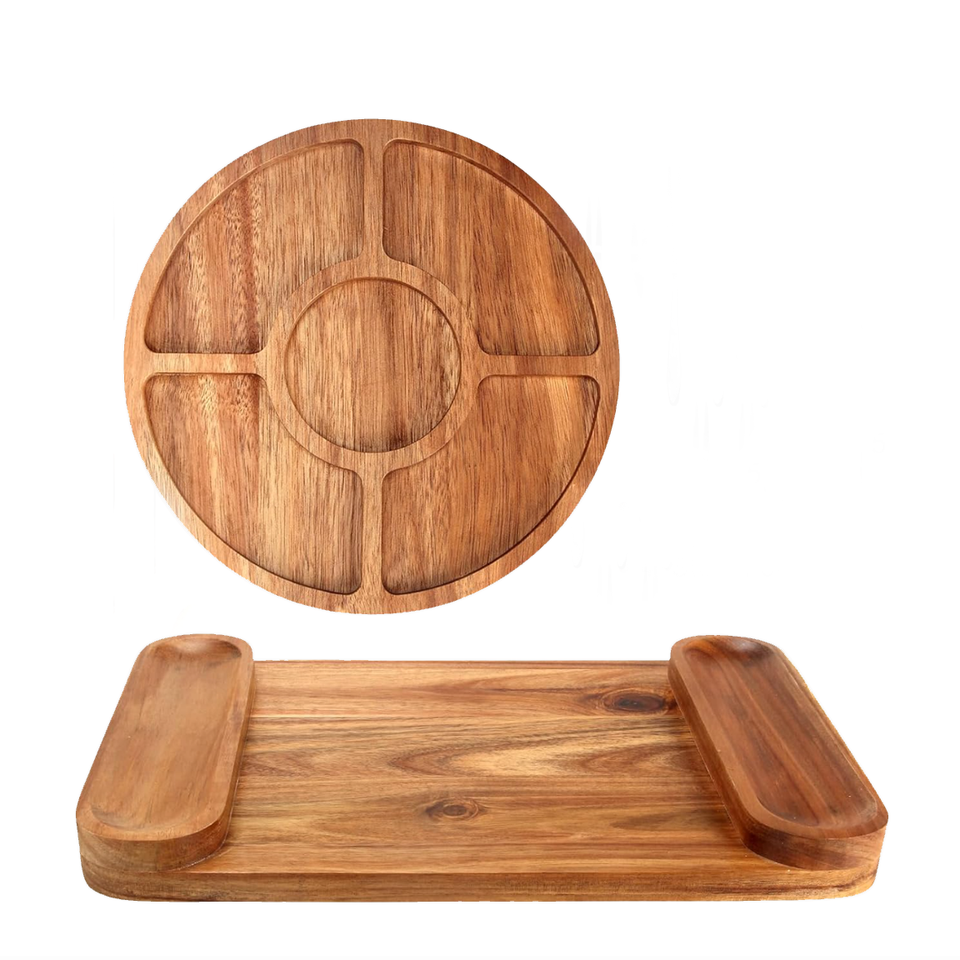 Nombre del producto:Bandeja y platos de madera de acacia L Juego de 2