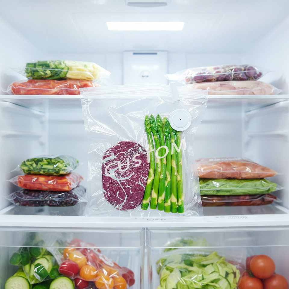 Bolsas de Compresión al Vacío Personalizadas de Grado Alimenticio, Bolsas de Almacenamiento al Vacío con Cierre y Válvula de Aire para Frutas, Verduras y Alimentos