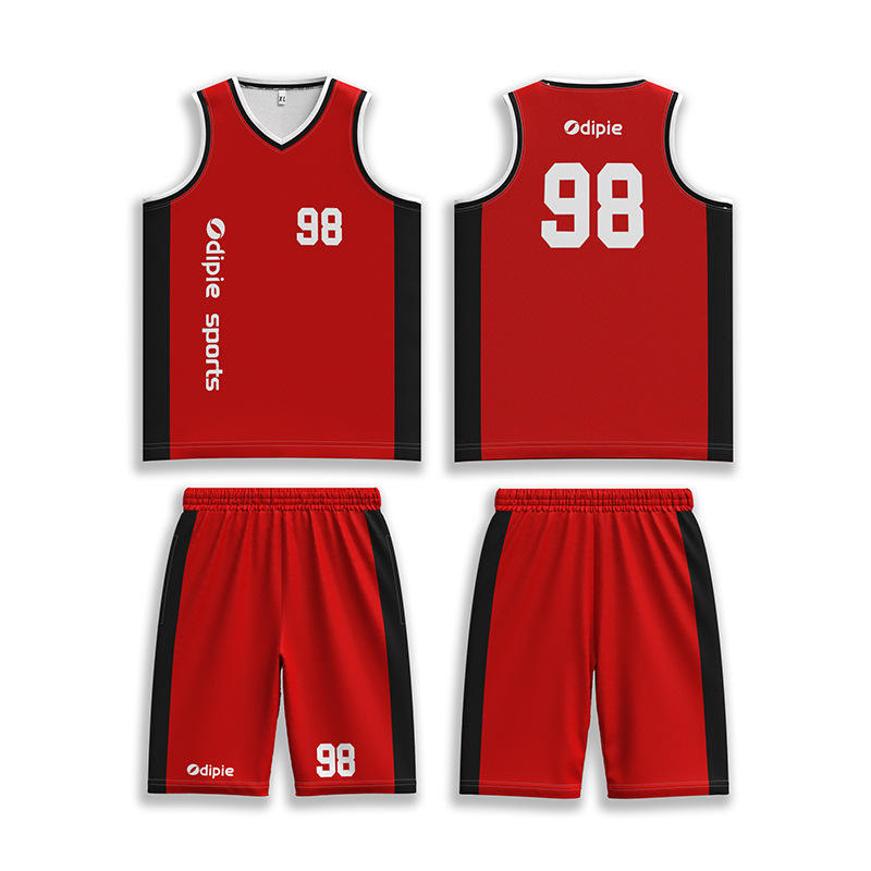 Conjunto de Uniforme de Baloncesto Fools para Hombre, Rojo y Negro, Cuello en V, Jersey de Secado Rápido, Pantalones Cortos, Número Personalizado 98, Ropa de Equipo, 100% Poliéster, Privado