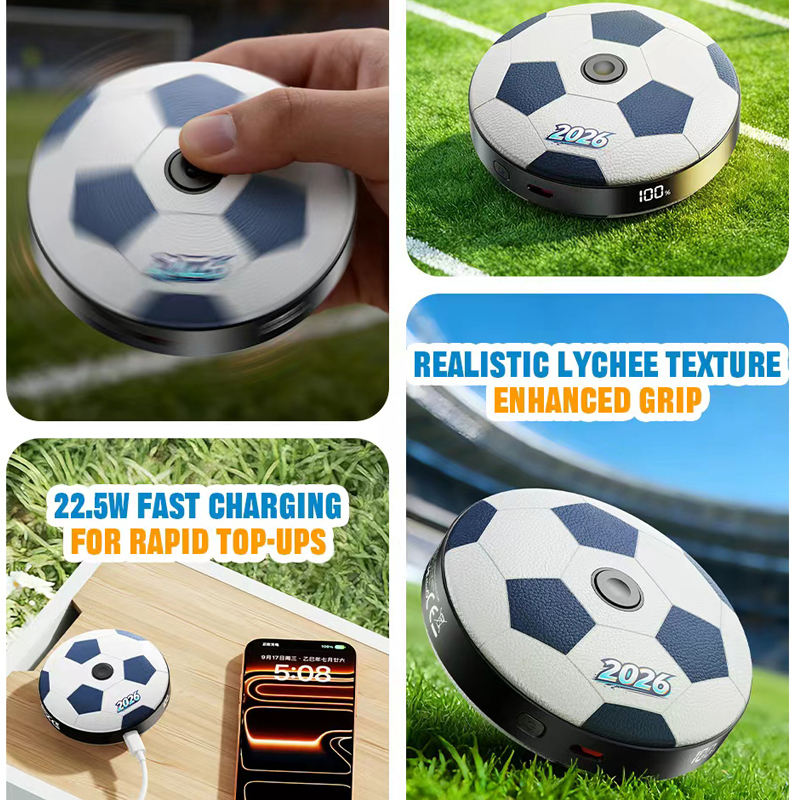Banco de Energía con Diseño de Fútbol, 5000 mAh, Carga Rápida, con Función de Spinner, Mini Banco de Energía Tipo-C, 5000 mAh