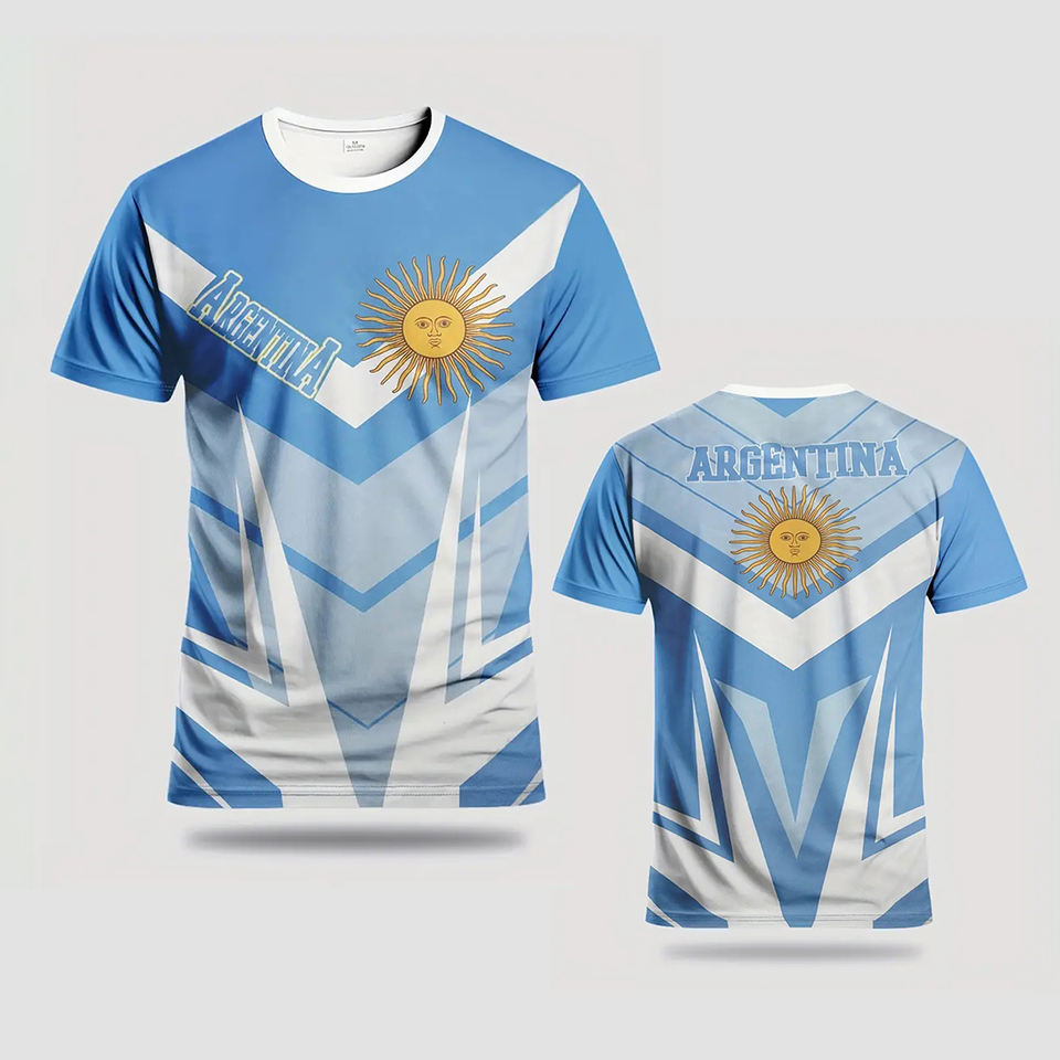 Camisetas de fútbol con patrones argentinos Logotipo personalizado Uniforme de bola de hombre digital Moda Verano Impreso Camiseta corta