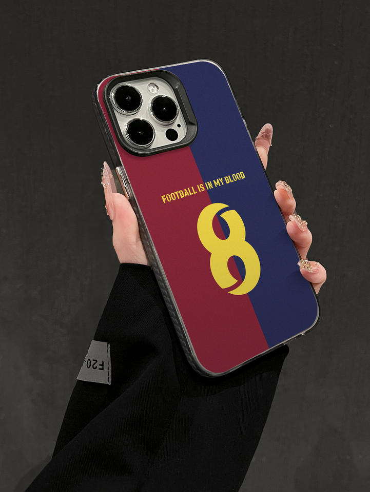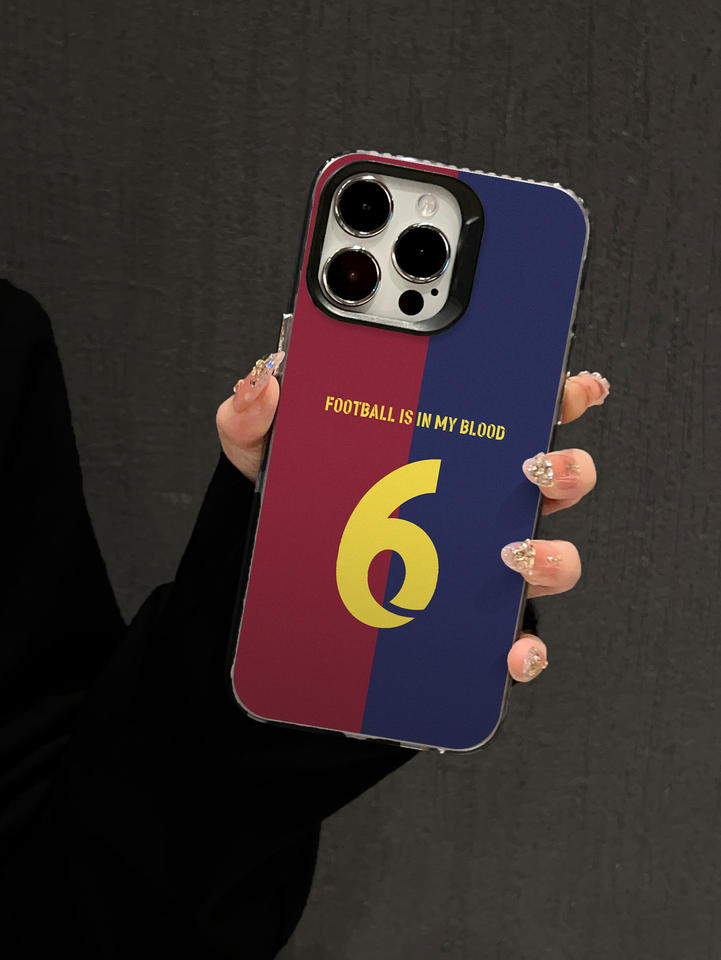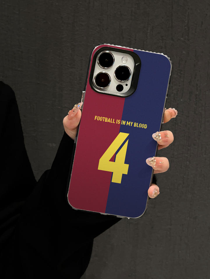 Funda para Teléfono con Número 4 de Fútbol, Funda Deportiva Resistente a Impactos en Rojo y Azul para iPhone 16/15/14/13/12 Pro Max, Funda Antigolpes