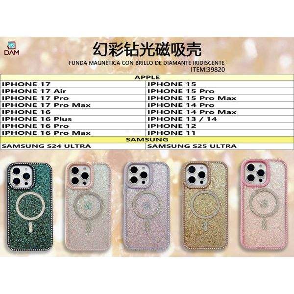 Funda Magnética para 16 Plus con Diseño de Diamantes Brillantes, Material TPU+PC, Soporte de Anillo Magnético