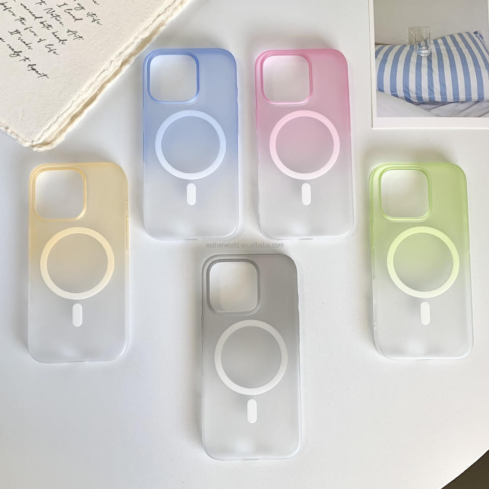 Funda Protectora Transparente Magnética con Degradado de Hielo Escarchado para 16 Pro Max, Personalizable, Ultrafina, de PC, Anti-caídas