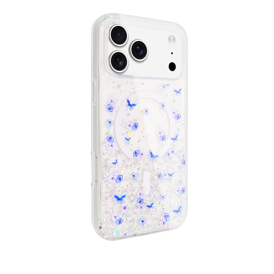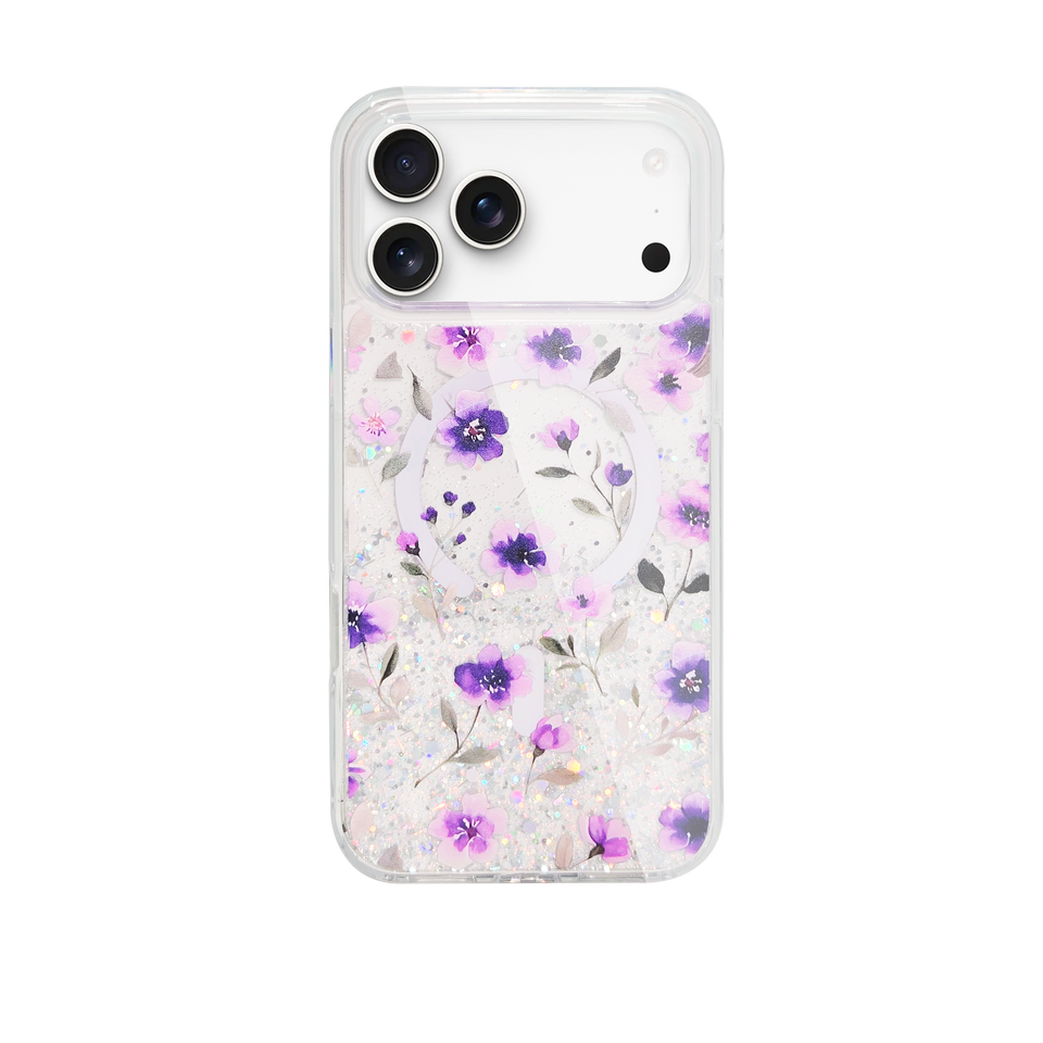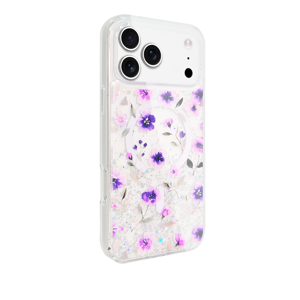 Funda para Teléfono 17Pro Max con Flores Secas, Brillantina, TPU+PC, Cubierta Suave, Porta Tarjetas, Protección 360°, Diseño Floral, Regalo para Mujer