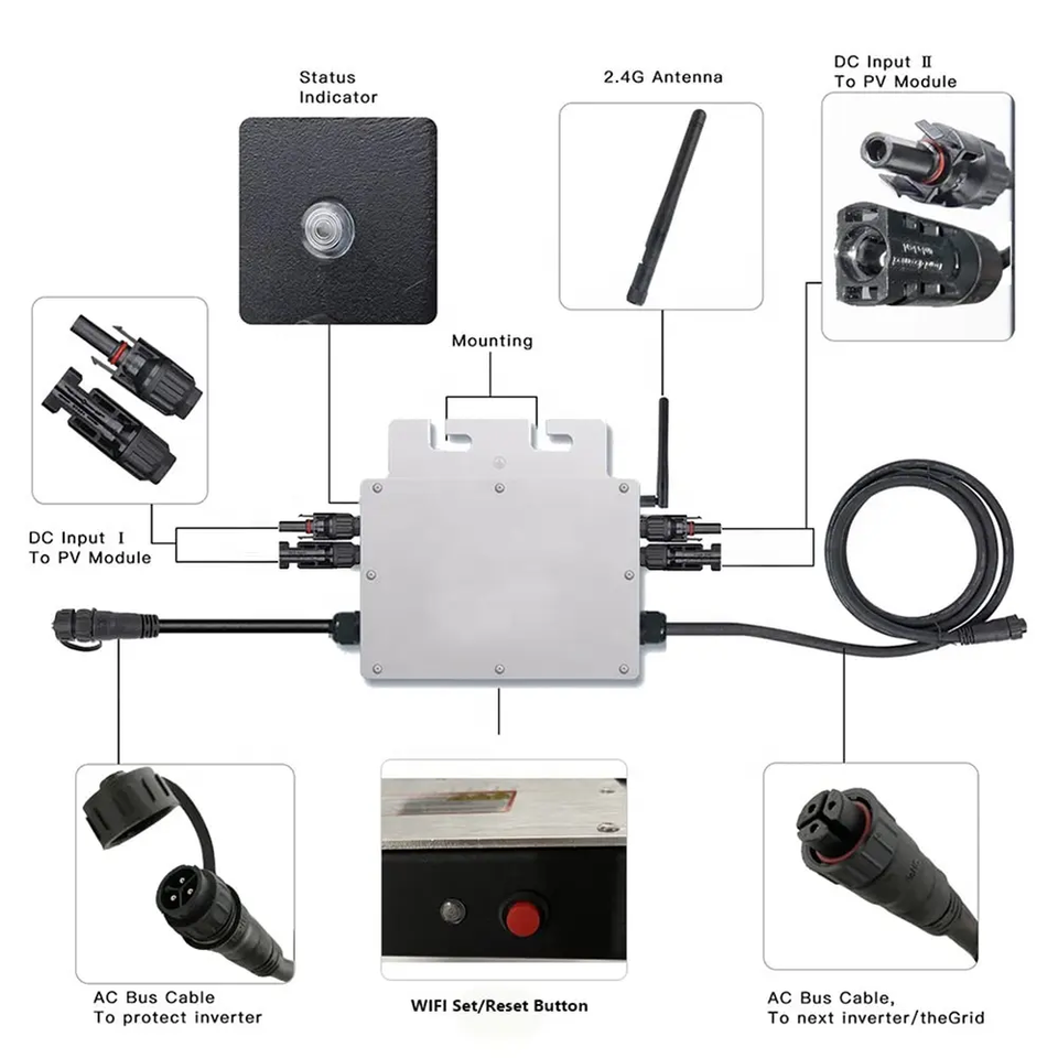 Inversor Solar de 1800W 1.8kW Monofásico Conectado a la Red 220/230V IP67 SUN-M180-G4-EU-Q0 4 MPPT Sistema Solar CN