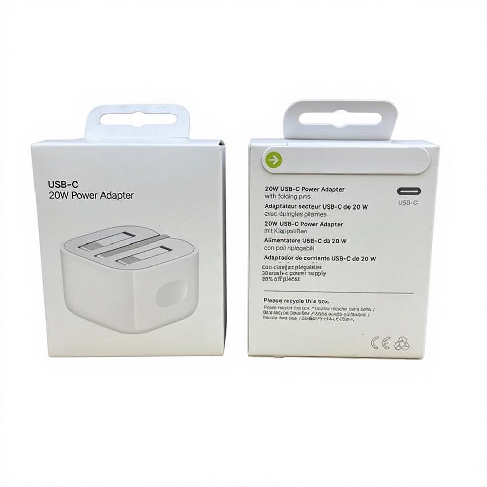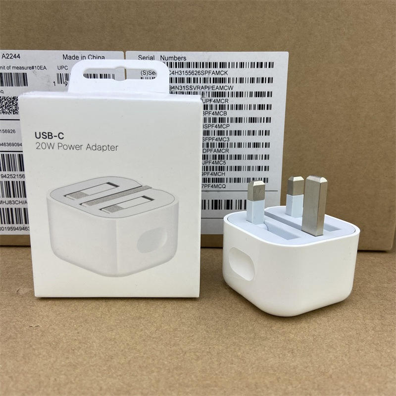 Adaptador de Corriente de Carga Rápida USB-C PD con Enchufe del Reino Unido y Pines Plegables, Certificado CE, Modelo A2244, Original y Genuino