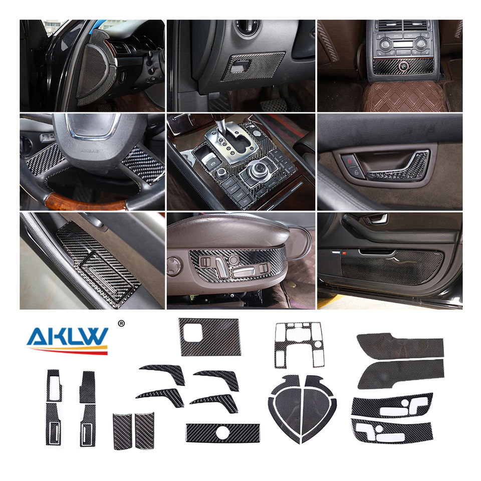Para 2004 - 2012 Audi A8 Kits de accesorios interiores de coche de fibra de carbono suave pegatinas decorativas