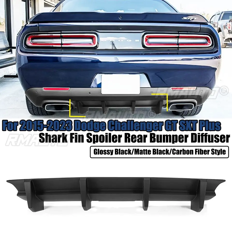 Para 2015-2023 Dodge Challenger GT SXT Plus difusor de parachoques trasero divisor de labios alerón de aleta de tiburón estilo de fibra de carbono negro mate
