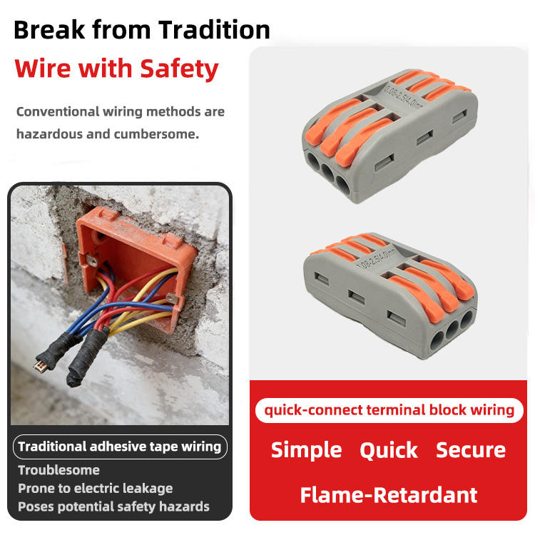 Bloques de terminales para cables eléctricos de distribución de energía 225, conexión push-in de 5 entradas y 5 salidas, contactos de cobre