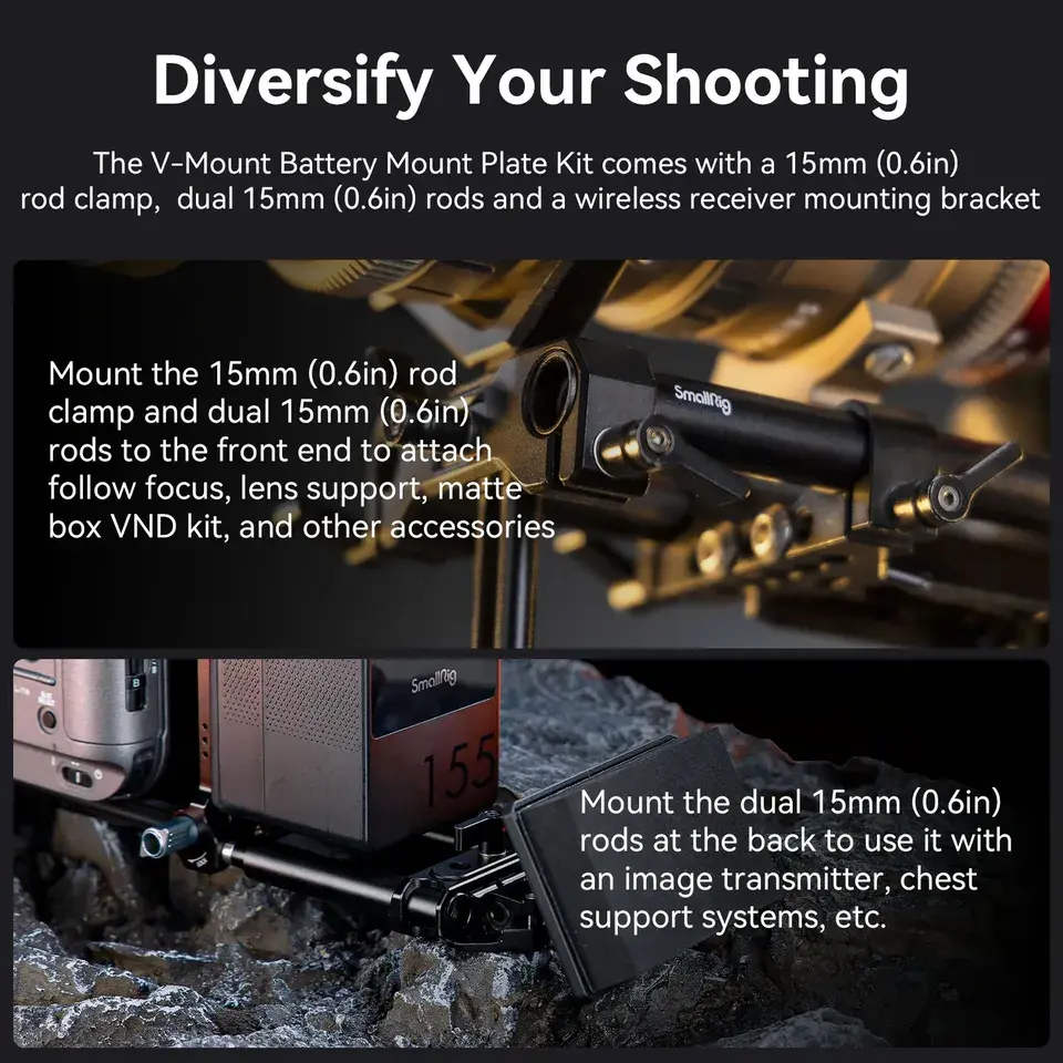 Kit de Placa de Montaje de Batería en V Ajustable, Diseño Modular Ligero y Compacto para Cámara de Cine 4323 FX6 C70