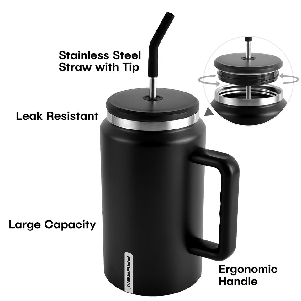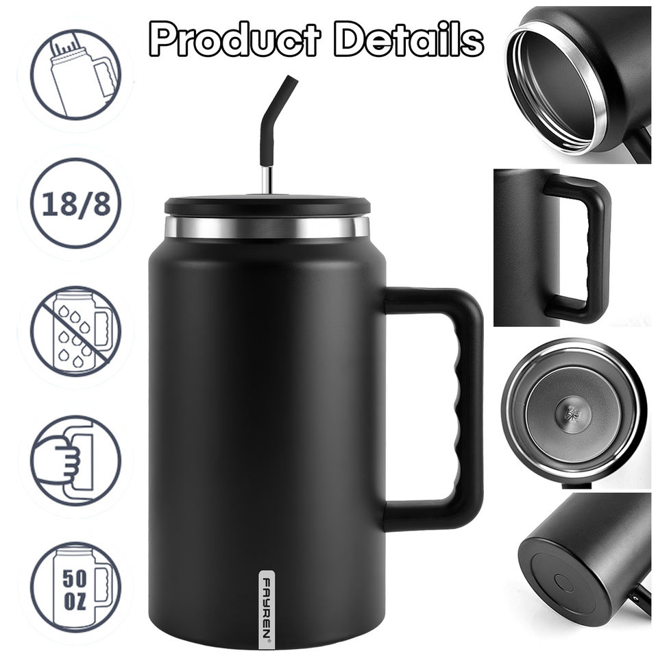 Para termo de acero inoxidable de gran capacidad de 50oz con tapa a prueba de fugas y pajita para acampar en casa, oficina y uso en el coche