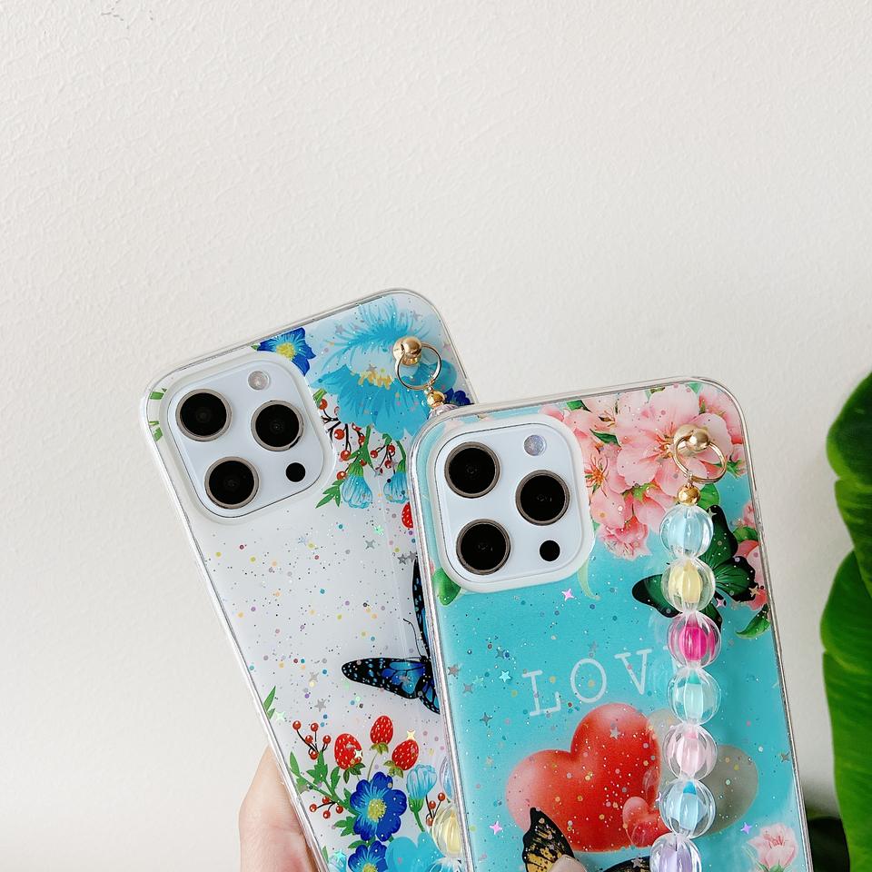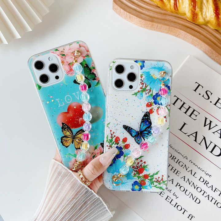 Funda para Teléfono Móvil A17 con Diseño de Cadena, Material TPU, Patrón de Flores de Dibujos Animados, Anillo Protector Antigolpes, Protector de Cámara UV