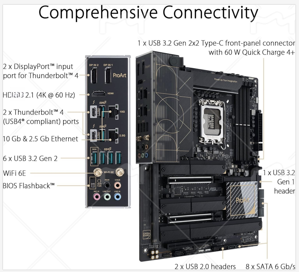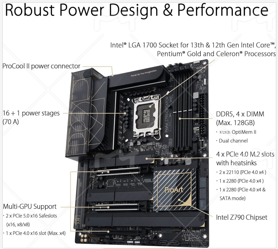 Placa base para placa base ASU ProArt 1700 WiFi 6E LGA 5,0 ATX para Intel 14th 13th 12th Gen PCIe 2,5 2x Thunderbolt 4 10G