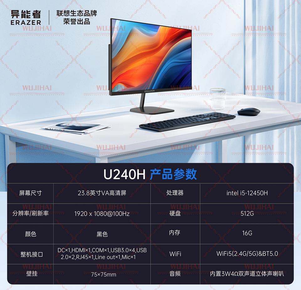 Computadora Todo en Uno para Negocios y Oficina Ability U240H de 23.8 Pulgadas, para Cursos en Línea, I5-12450H, 16G, 512G, Negra