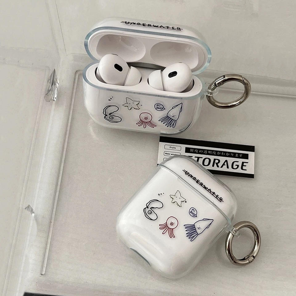 Para AirPods 1/2/3/4/Pro Funda transparente Ocean Sea Animal Line Art Design Funda protectora de TPU suave