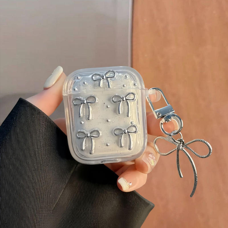Para AirPods 4/3/Pro 2/Pro/3 resina brillo arco cadena auricular caso estilo femenino cubierta protectora nuevo diseño