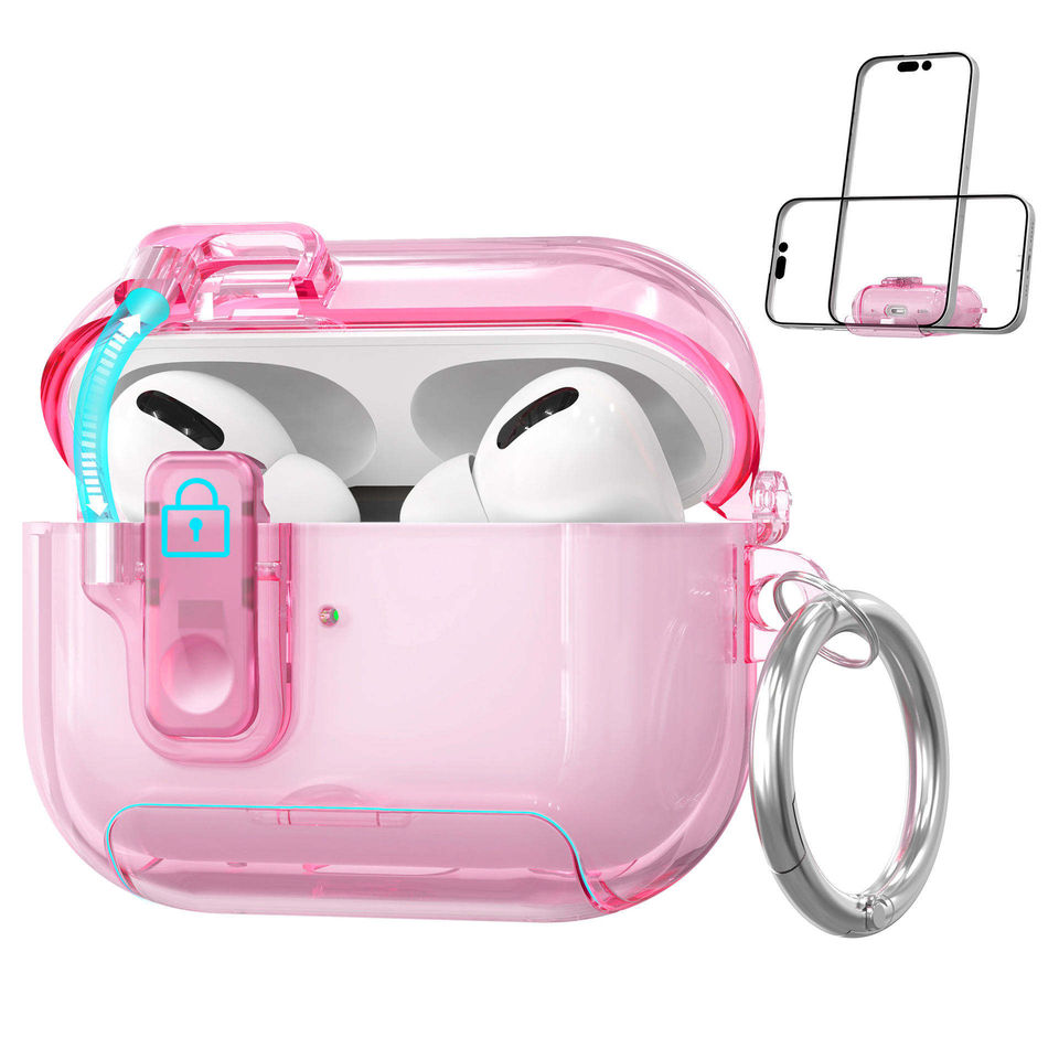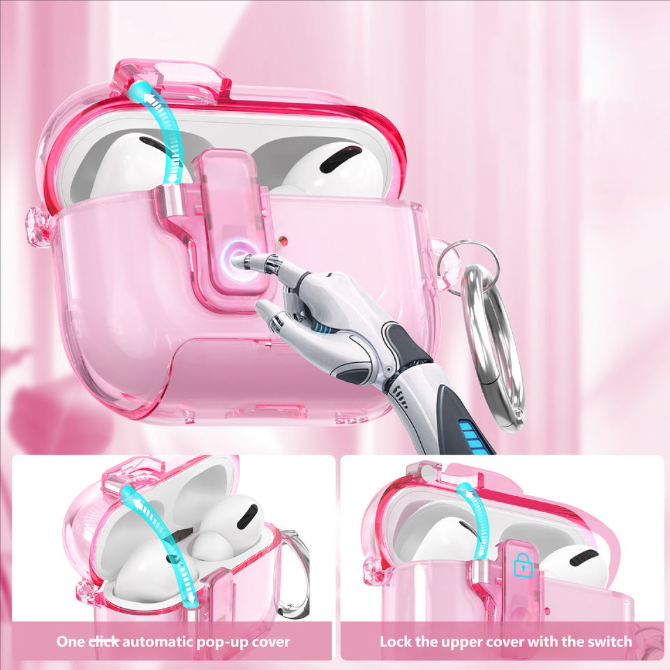 Funda para AirPods Pro 3 con Bloqueo de Seguridad, Apertura Automática, Soporte Antigolpes, Funda Transparente para Auriculares, Compatible con Airpods 4 Pro 2 3