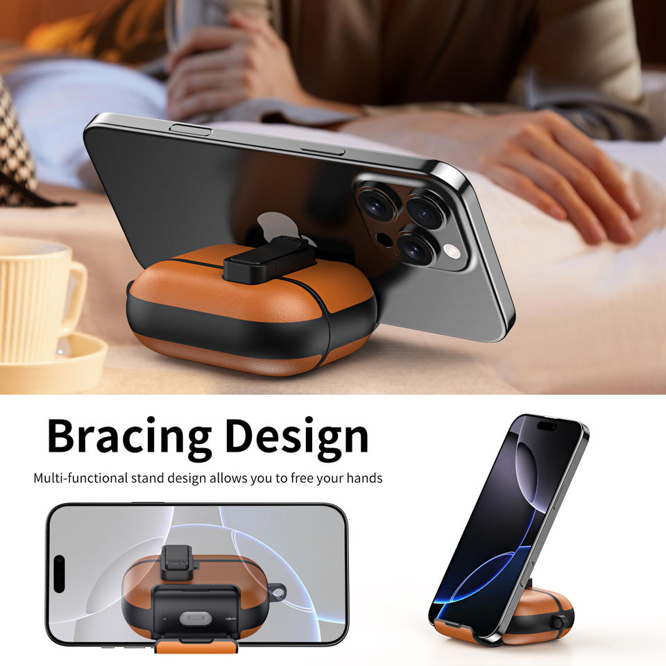 Características:Funda de cuero para auriculares con bloqueo magnético y soporte creativo
