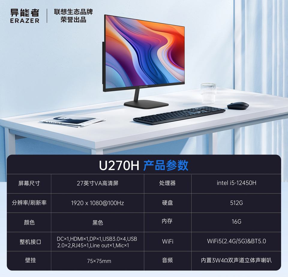 Computadora Todo en Uno para Oficina y Negocios, Capacidad U270H/i5-12450H/16G/512G, para Aprendizaje en Línea, 27 Pulgadas, Negra