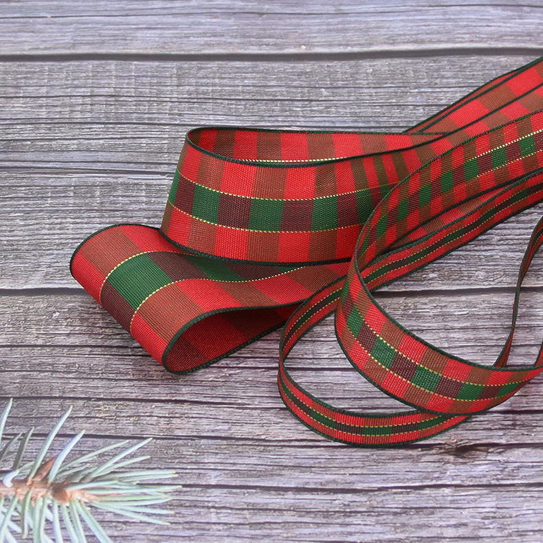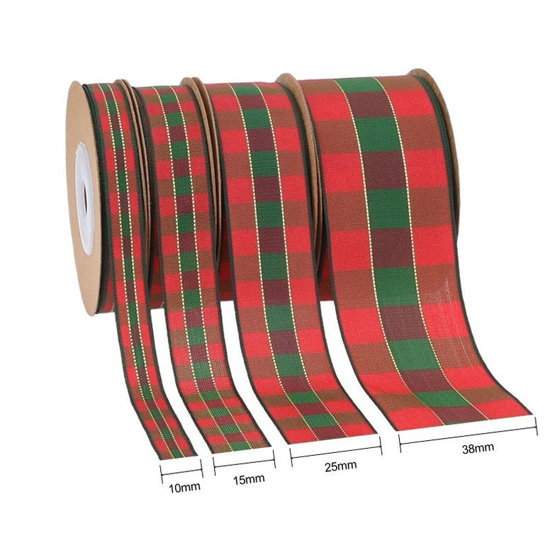 Para Amazon Classic Scottish Red and Green Plaid Ribbon Poliéster Caja de regalo de Navidad Bow Packaging Ribbon Bouquet Party Supplies