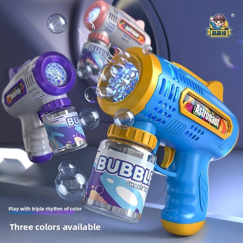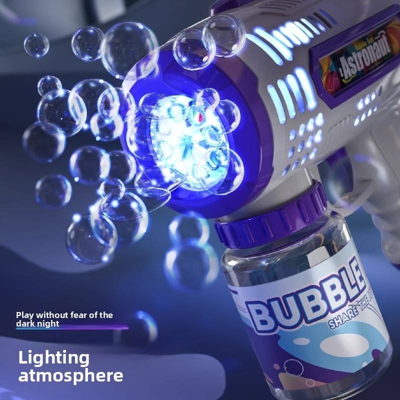 Para Amazon Cross-Border Best Seller Juguete para niños al aire libre Pistola de burbujas de mano con luz completamente automática de 8 agujeros Plástico duradero