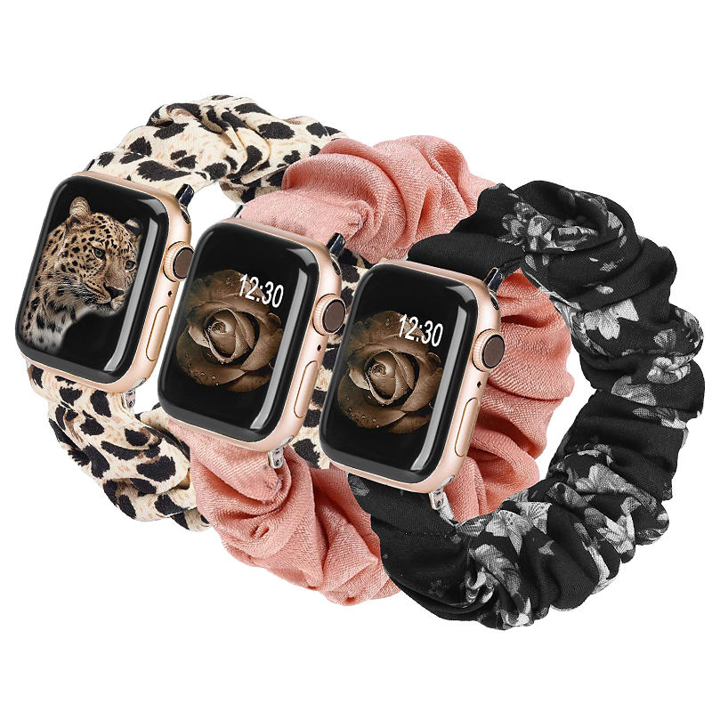 Correa elástica para Apple iWatch para mujer, banda de tela suave estampada, banda elástica Scrunchy 41mm 45mm