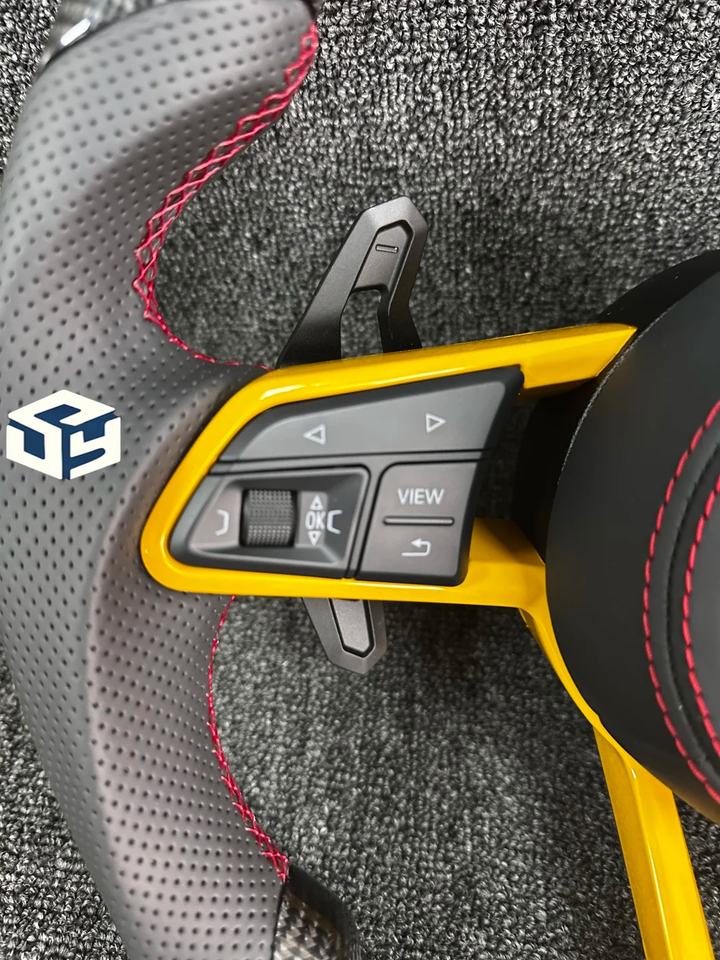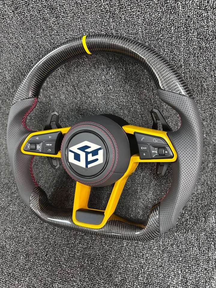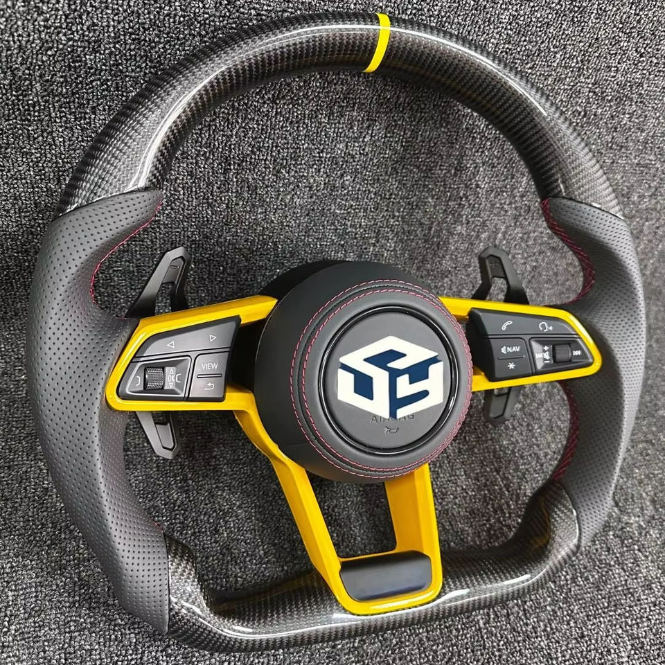 Volante de Cuero y Fibra de Carbono para Audi R8 TT Mk2 B8 RS TTS TTRs RS3 RS6 RS4 RS5 RS7 A3 D3 A4 A5 A6 A7 A8 Q5 Q7
