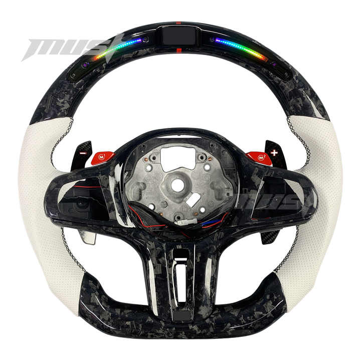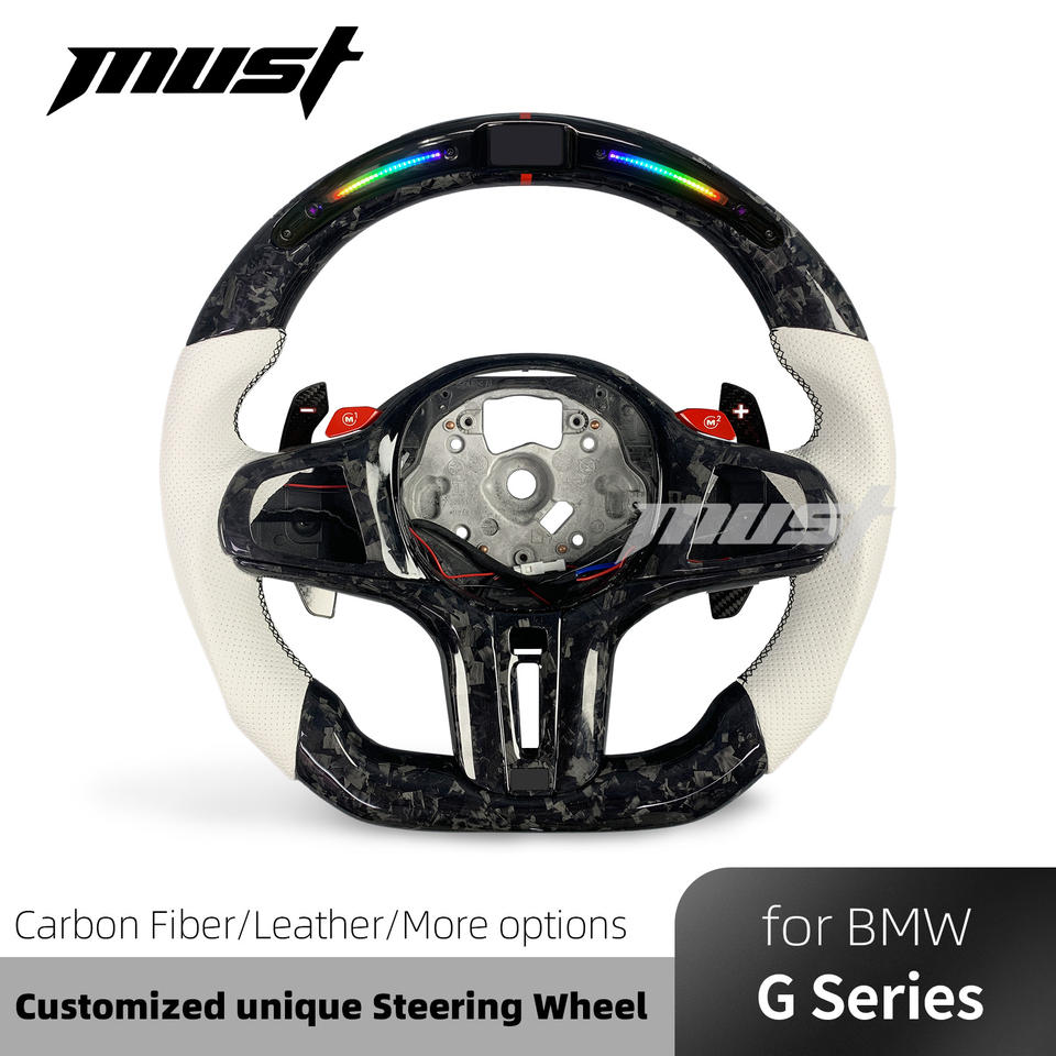 Volante LED de Fibra de Carbono Forjado Personalizado para BMW Serie G G2X G3X M3 M4 M5 M8 X3M X6M 640i GT 550i 440i 340i G11 G15 G29