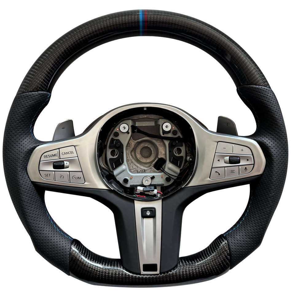 Volante LED de Fibra de Carbono Forjado Personalizado para BMW Serie G G2X G3X M3 M4 M5 M8 X3M X6M 640i GT 550i 440i 340i G11 G15 G29