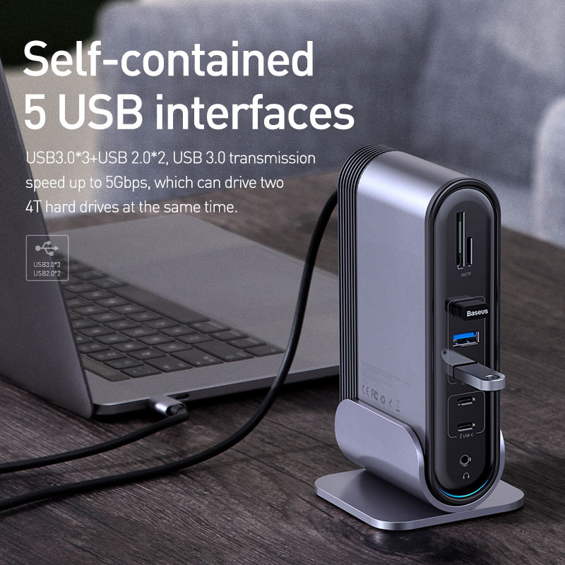 Para baseus estación de trabajo adaptador HUB tipo C multifuncional de tres pantallas (CN + UE + Reino Unido)