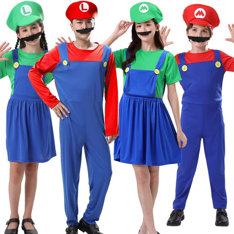 Para Bros adultos y niños Cosplay conjunto de disfraces de baile para fiesta de Halloween TV y película género regalo para niños
