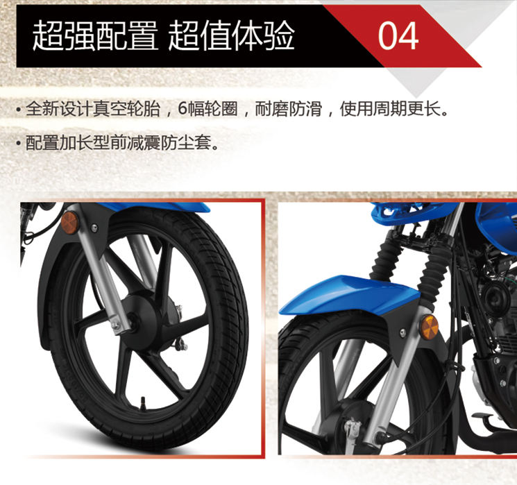 Brake type:Front disc, Rear drum