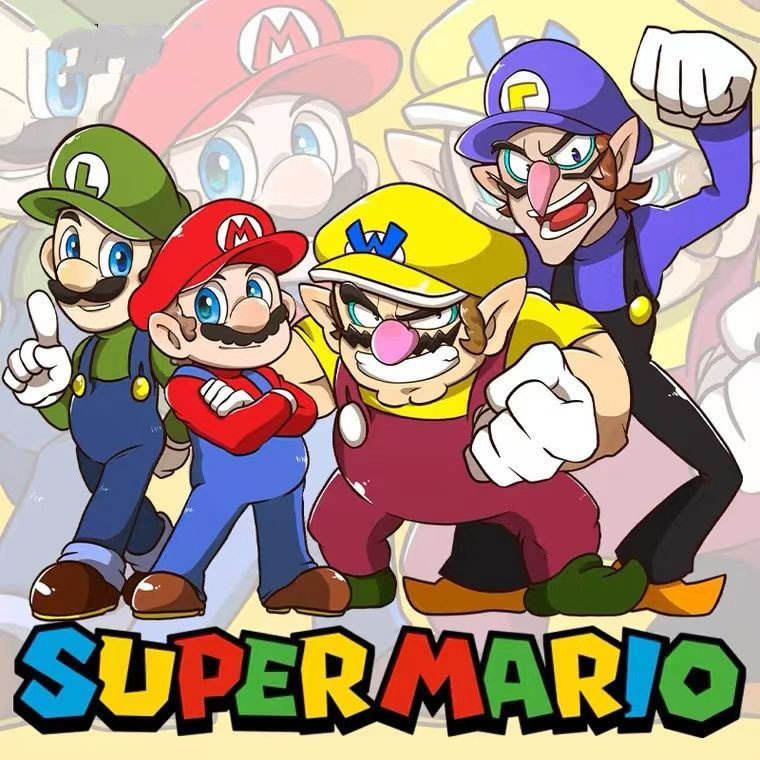 Tipo de diseño:Carta, logotipo de Mario, logotipo de Luigi, logotipo de Wario