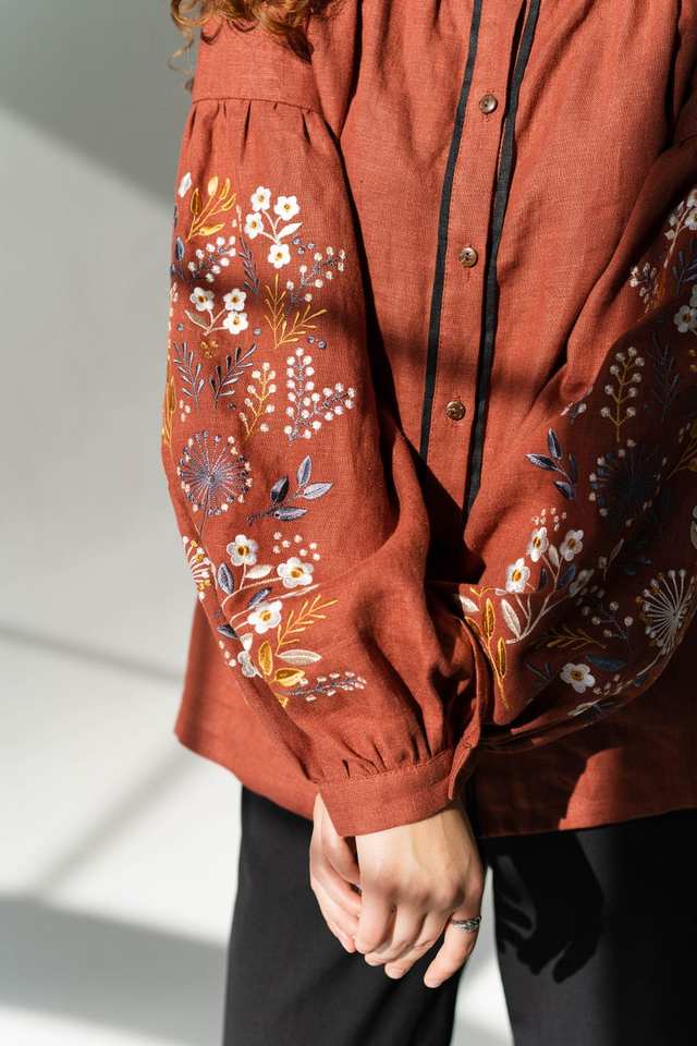 Técnicas:Tinte sencillo, Bordado, Ropa teñida, Hilo teñido, Corte automatizado