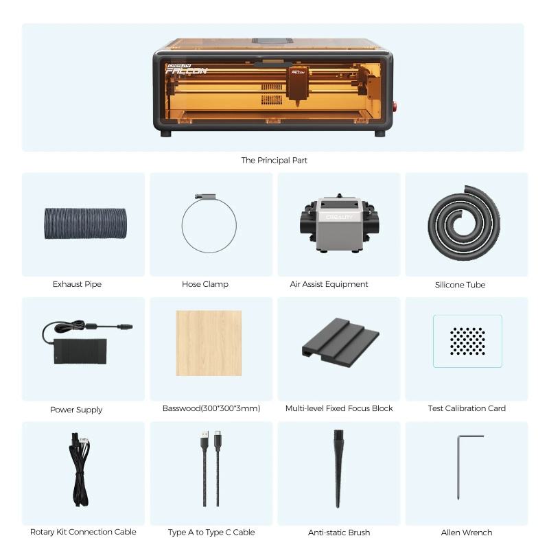 Grabador Láser Cerrado Creality Falcon A1 10W, Cortadora de Diodo de 305x381mm para Madera/Cuero/Plástico, Modo CO2 y Seguridad Clase 1