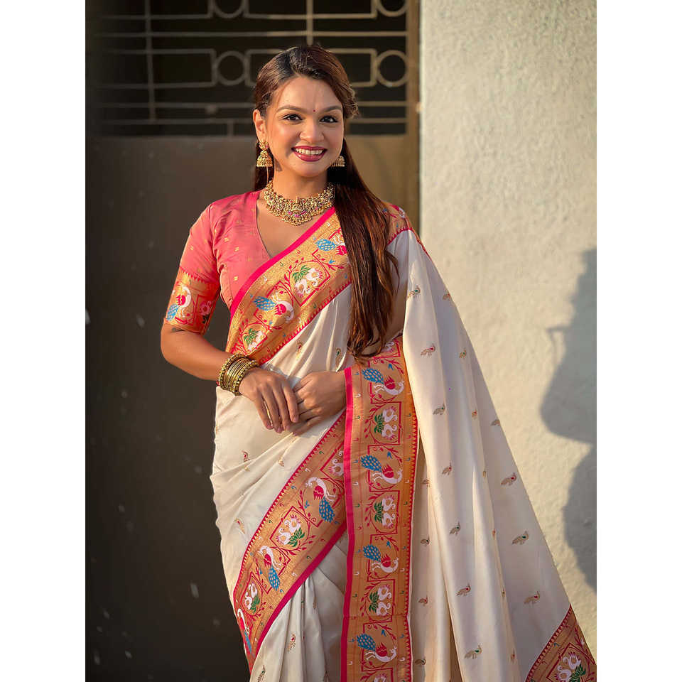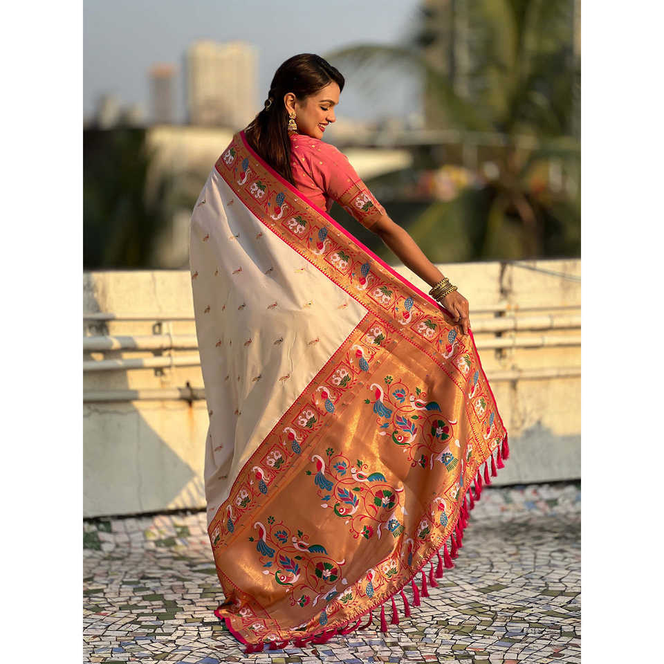 Sari de Seda Suave Swan Rajhans Paithani de Elite Weaves, 650g, Hecho en India y Pakistán