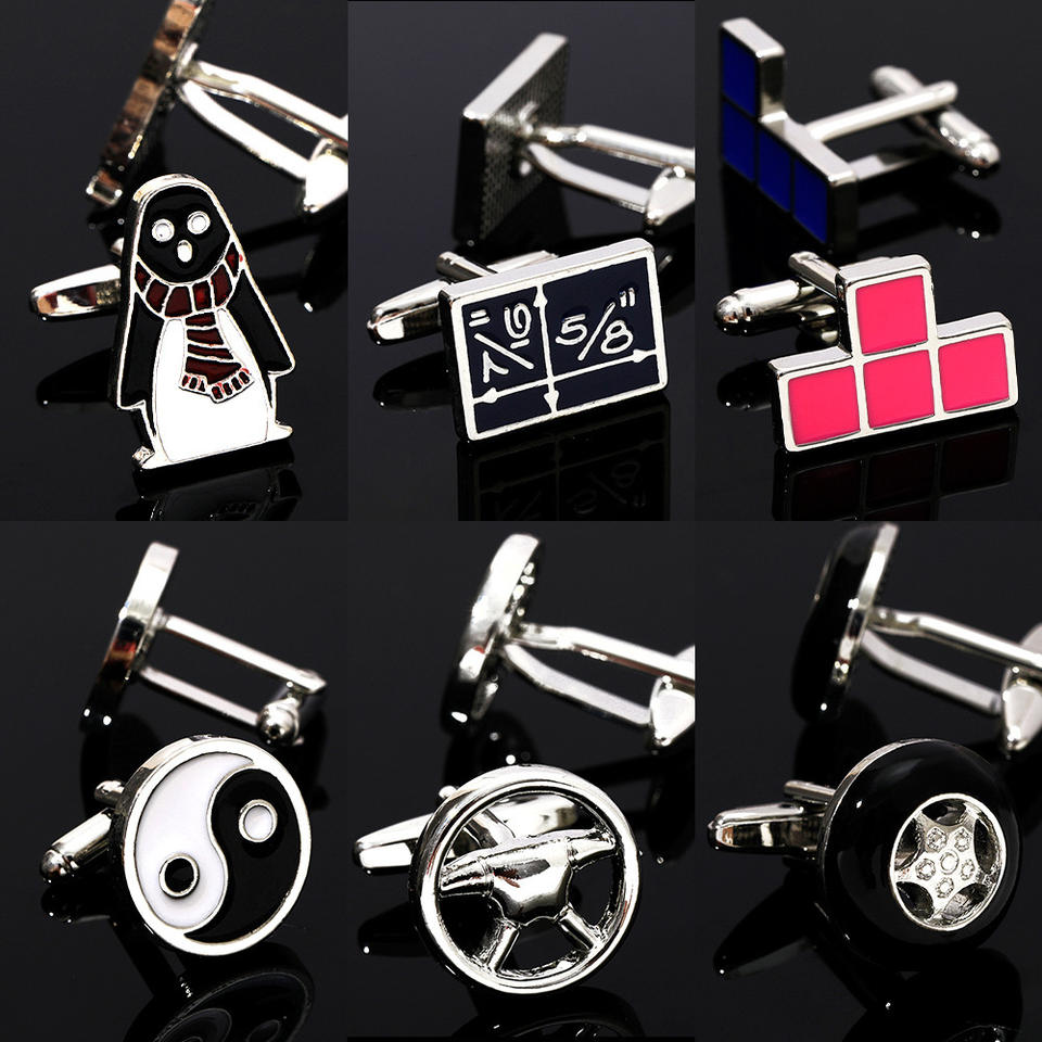 Mancuernillas de Metal Creativas con Diseño de Pingüino y Tai Chi, Broches Franceses Plateados, Precio Razonable, Clip de Corbata Personalizado