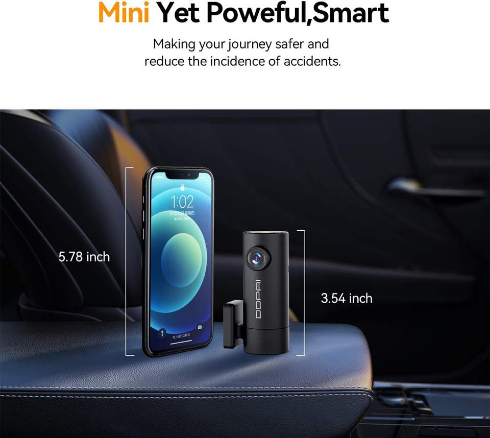 Cámara para Coche DDPAI mini Pro con Bloqueo Global de Emergencia en Caso de Accidente, Gran Angular de 140°, DVR para Salpicadero con Sensor G
