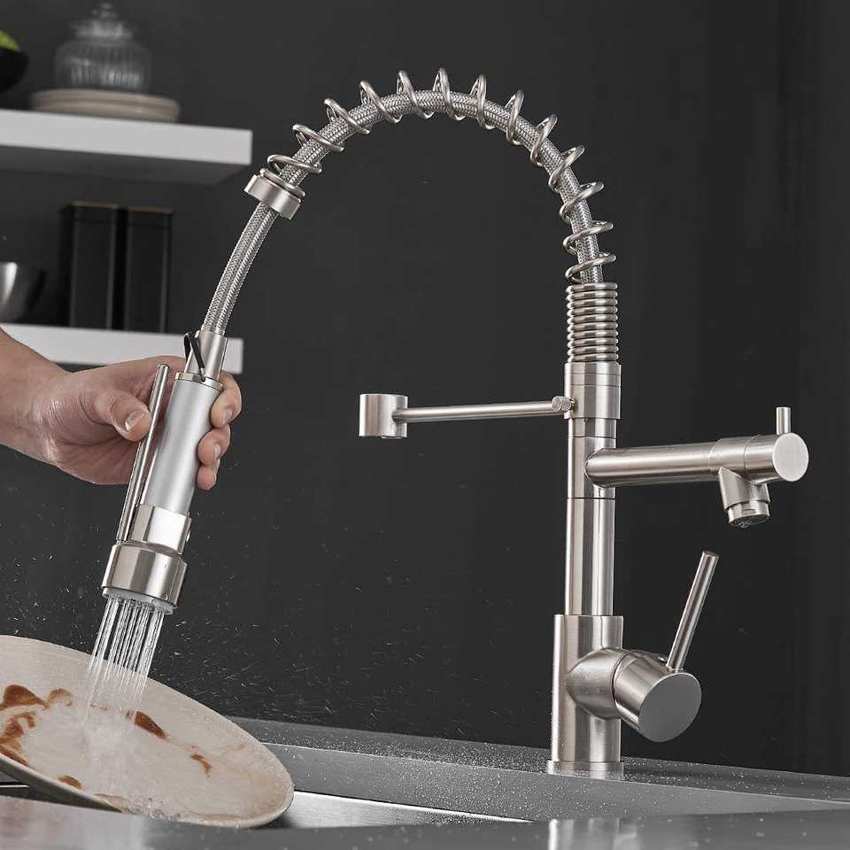 Grifo de Cocina Moderno de Arco Alto FLG con Luz LED, Diseño Extraíble, Grifo de Dos Cabezales, Manija de Aleación de Zinc, Opción OEM/ODM para el Hogar
