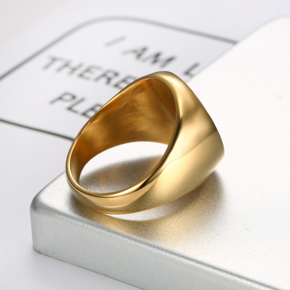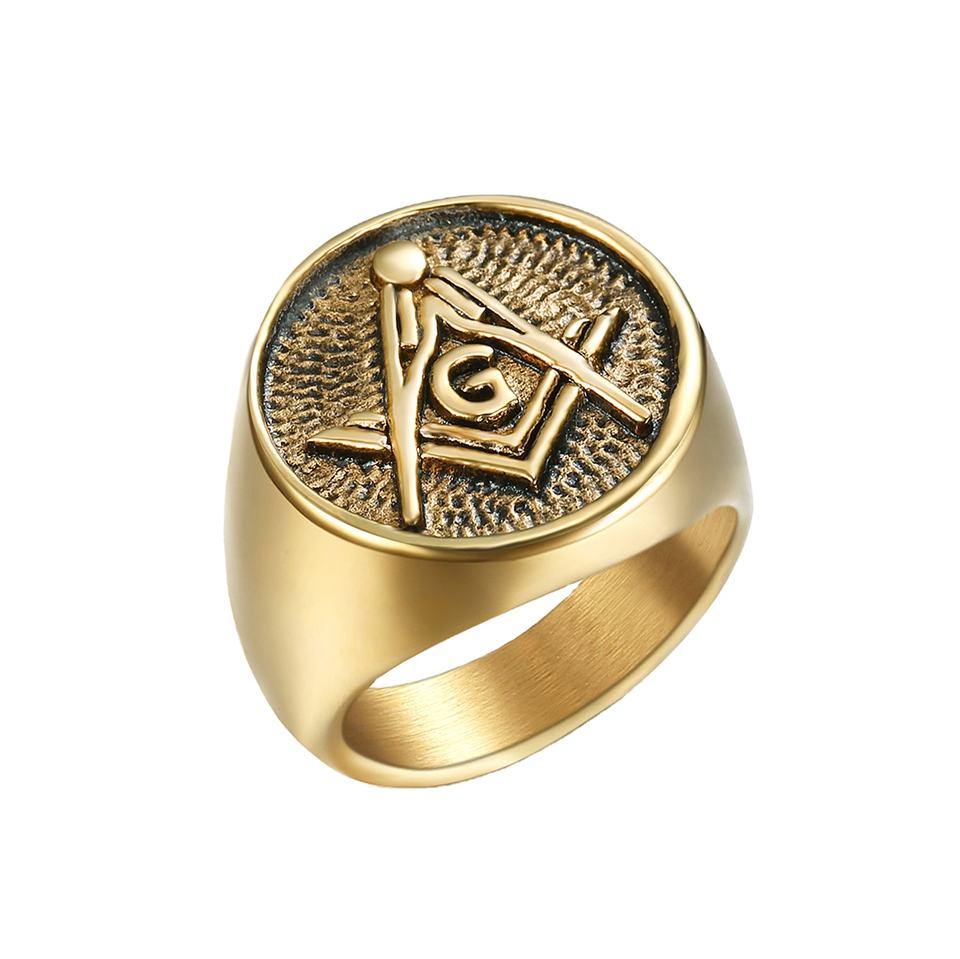 Anillo Masónico de Acero Inoxidable Chapado en Oro con Piedra Natural, Estilo Clásico Europeo Americano, Personalizable de Fábrica, Venta Caliente Transfronteriza