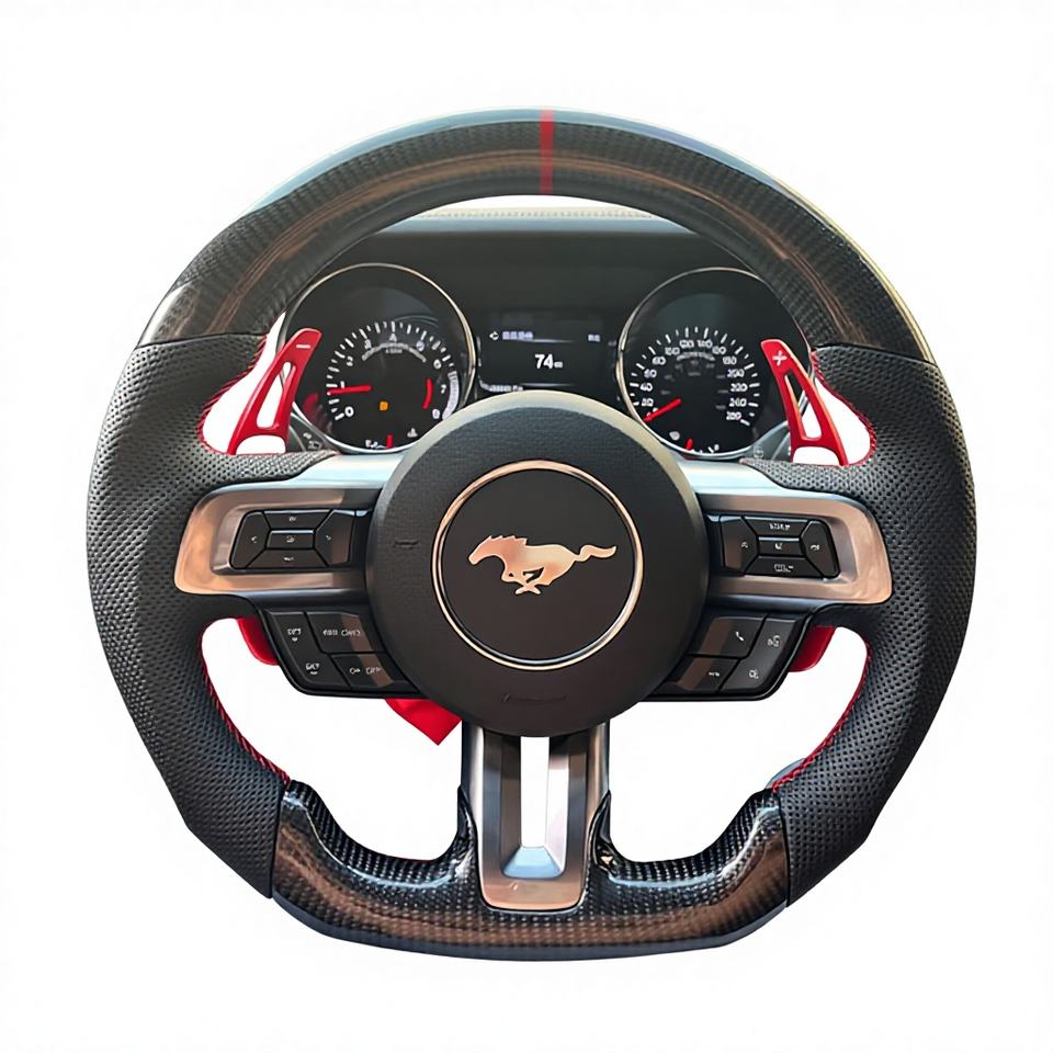 Volante de Fibra de Carbono Personalizado Drifton para Mustang 2015-2017, Tejido 3K/6K/12K, Acabado Brillante/Mate, Protección UV