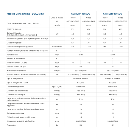 Aire Acondicionado Split Gree Airy Inverter A++ R32 Blanco con Wi-Fi, Ahorro de Energía, Modelo Eléctrico Variable 9000+9000, para Uso Doméstico