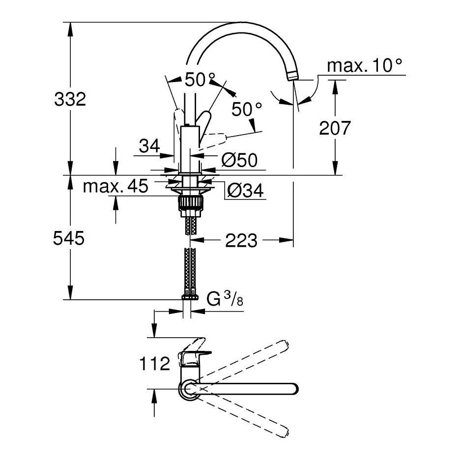Grifo de Cocina Monomando Grohe START CURVE Cromado Starlight 31554001