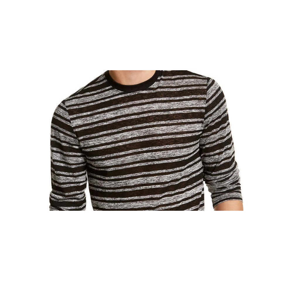 Camiseta Clásica a Rayas de Manga Larga para Hombre Guess, Camiseta Deportiva Oversize en Tejido de Punto Gris de 280 Gramos, Talla Mediana