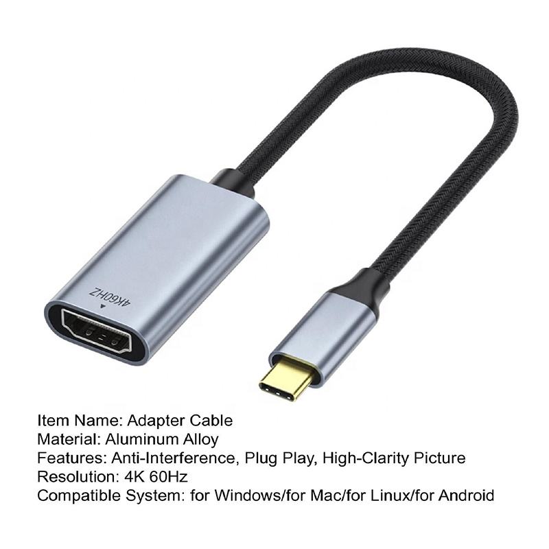 Adaptador Convertidor de USB 3.1 Tipo C Macho a HDMI Hembra para Macbook Pro 4K 60Hz, con Cubierta de PVC, Coaxial, de Teléfono a TV