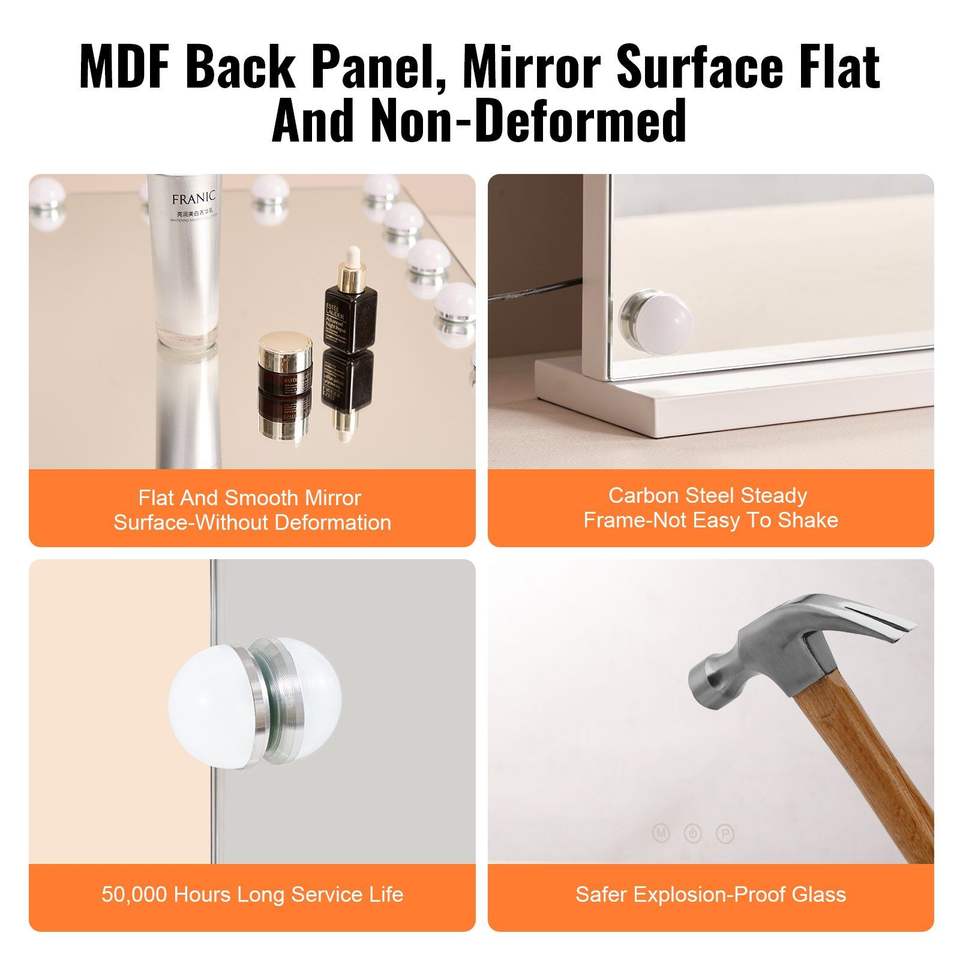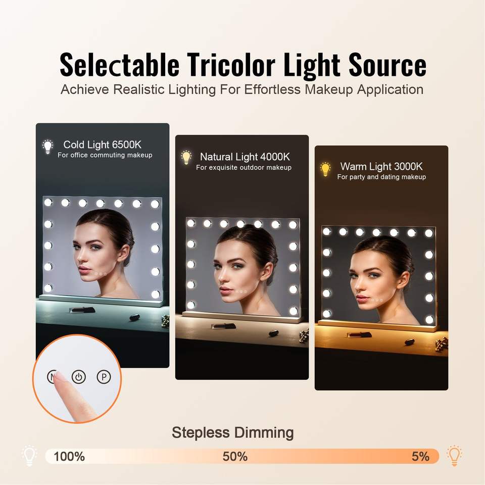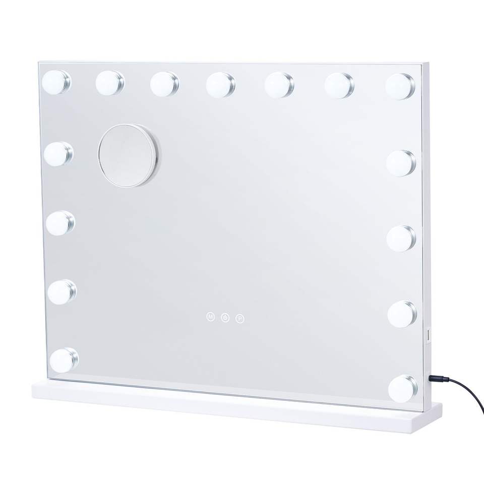 Espejo de Maquillaje LED Hollywood con Aumento Desmontable de 5X, 15 Bombillas Regulables y 3 Modos de Iluminación de Color